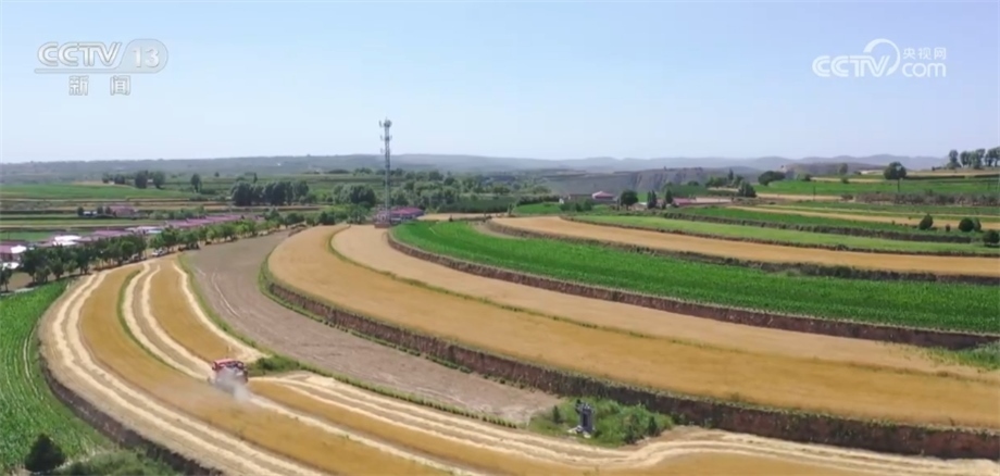 合道鎮(zhèn)趙家塬村村民 敬志軍:今年種了10畝小麥,一共是20畝地,我還種了10畝玉米。今年天(氣)干(旱),收割機(jī)第一次來我就開收,趁著天曬,我這麥子好些,一畝地打六七百斤。