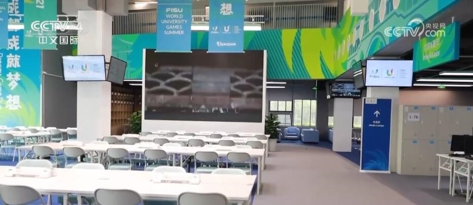 總臺(tái)記者 蔣林:我現(xiàn)在就在成都大運(yùn)會(huì)的主媒體中心,它與在大運(yùn)會(huì)當(dāng)中承擔(dān)開幕式的東安湖主體育場(chǎng)和火炬塔隔東安湖相望。我身后的這座建筑有一個(gè)非常好聽的名字,叫做東安書院。這是因?yàn)樵诔啥即筮\(yùn)會(huì)結(jié)束之后,這里將會(huì)變身成為成都東部地區(qū)面對(duì)市民開放的一座公共圖書館。而現(xiàn)在一直到比賽的賽會(huì)期間,這里就是成都大運(yùn)會(huì)的主媒體中心。它有兩大職能,分別是主新聞中心和國際廣播中心。今天這里將會(huì)對(duì)媒體試開放,我們一起去看看里面現(xiàn)在準(zhǔn)備好了嗎?