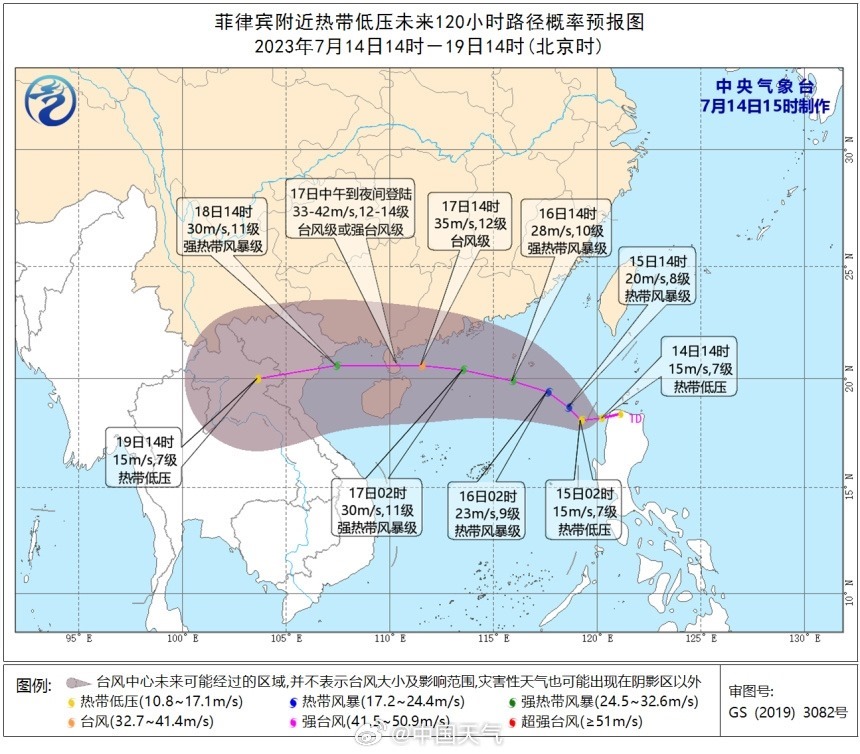央視網消息:據@中國天氣網微博消息,今天(7月14日)上午11時,菲律賓附近熱帶低壓生成,預計該熱帶低壓將加強為今年第4號臺風“泰利”,并于下周初影響或登陸我國華南沿海,可能成為今年首個登陸我國的臺風。臺風“泰利”有何特點?會有哪些影響?@中國天氣 首席氣象分析師@Walle胡嘯 為您解析。