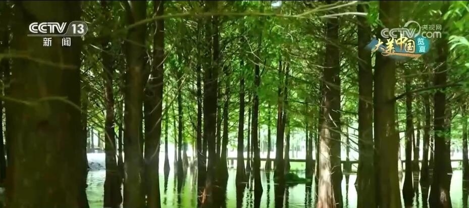 跟隨鏡頭,我們來(lái)到江蘇常州新龍生態(tài)林的“水上森林”,滿目蔥蘢、綠意蕩漾。5000多株水杉高大挺拔,陽(yáng)光從樹林縫隙間灑落,樹下波光粼粼、層層疊疊,置身其中多了分沉靜和清涼。據(jù)了解,新龍生態(tài)林是一處再生水利用工程所在地,自建成運(yùn)行以來(lái),已累計(jì)分流凈化中水約2億噸,為保護(hù)長(zhǎng)江常州水源地和節(jié)約城市用水作出貢獻(xiàn)。