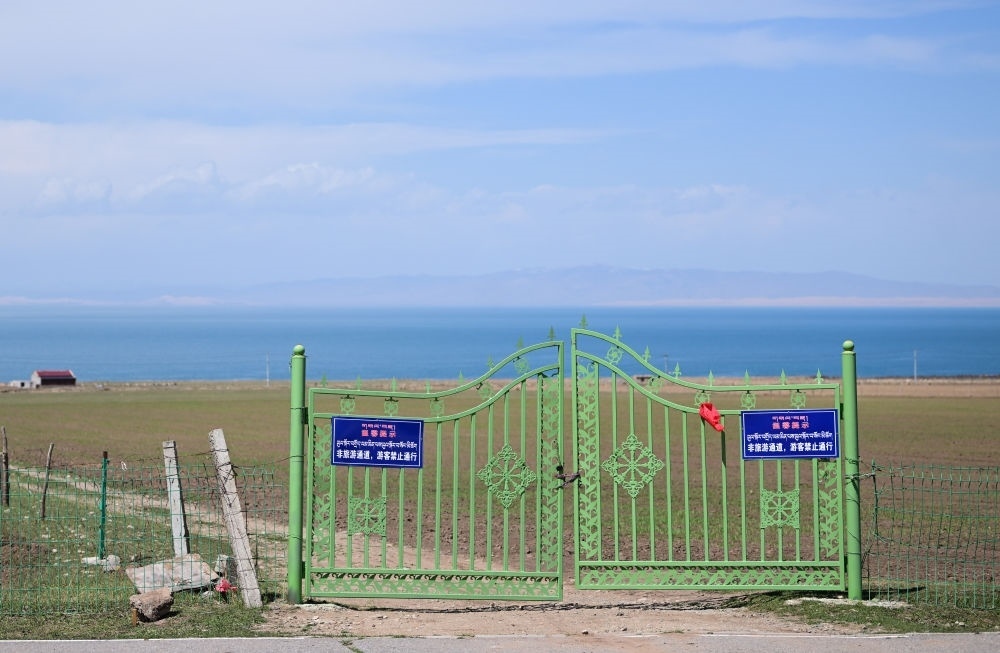 對(duì)此,青海省于2022年對(duì)私設(shè)“景點(diǎn)”亂象開(kāi)展專項(xiàng)整治。記者日前在青海湖沿岸的海南藏族自治州共和縣、海北藏族自治州剛察縣和海晏縣走訪看到,昔日熱鬧的私設(shè)“景點(diǎn)”已被取締,牧民自家草場(chǎng)圍欄的鐵門(mén)入口處也沒(méi)有攬客現(xiàn)象。