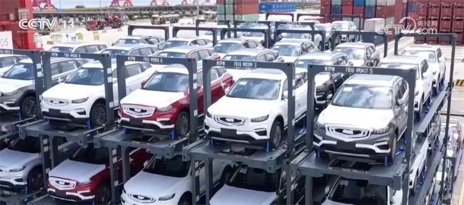 在太倉港汽車出口碼頭,一輛裝載了2797臺新能源車的船當天將從太倉出發(fā)駛往南美。為了滿足新能源車的運輸功能,這艘船做了相應改裝。艙內(nèi)配備紅外線溫度成像裝置和新能源車“一對一”實時溫度監(jiān)控系統(tǒng),一旦溫度過高就會開啟噴淋裝置。此外,為了滿足傳統(tǒng)汽車滾裝船運力不足的情況,太倉港和運輸企業(yè)還開發(fā)出了用定制集裝箱框裝載汽車,發(fā)揮集裝箱船的運力。根據(jù)統(tǒng)計,今年1—6月份,太倉港完成整車出口17萬輛,已經(jīng)超過去年全年的汽車出口量,其中,新能源車占比超過一半。