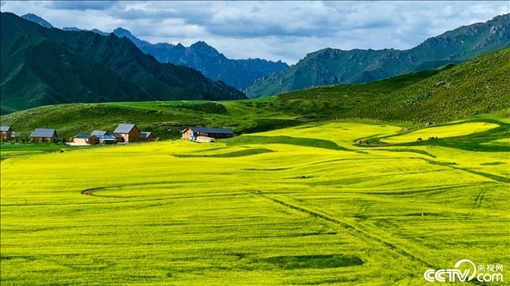 2023年7月14日,甘肅張掖,萬畝油菜花田進入盛花期,金色的花海美不勝收。