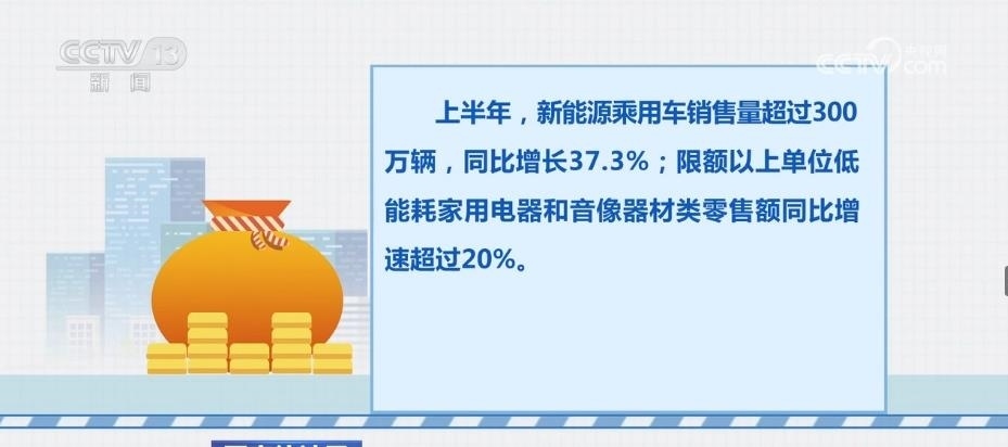 隨著居民消費(fèi)理念轉(zhuǎn)變,促進(jìn)消費(fèi)提質(zhì)升級(jí)政策顯效,消費(fèi)新動(dòng)能持續(xù)增強(qiáng)。上半年,新能源乘用車銷售量超過300萬(wàn)輛,同比增長(zhǎng)37.3%;限額以上單位低能耗家用電器和音像器材類零售額同比增速超過20%。