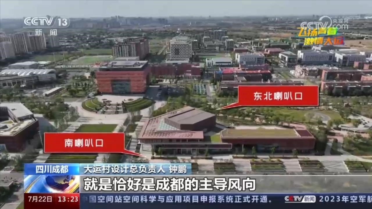 設(shè)計團(tuán)隊結(jié)合地形,設(shè)計了“兩頭大、中間小”的喇叭口,一邊朝東北,另一邊朝南,順著成都的主導(dǎo)風(fēng)向,把空氣接收進(jìn)來,在中間部分的收束區(qū)域,氣流被加速,就形成了“涼風(fēng)陣陣”。在物理學(xué)上,這叫文丘里效應(yīng)。