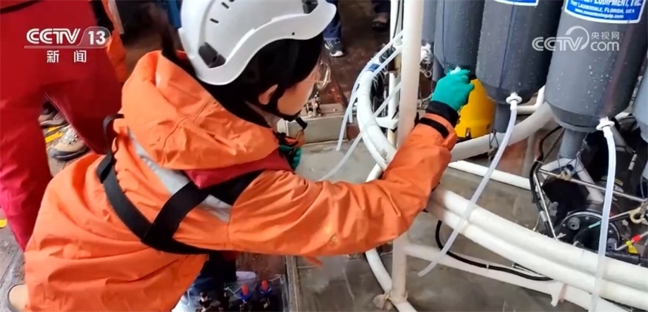 中國第13次北冰洋科學(xué)考察隊隊員 王穎:我們主要采的是溶解氧和DIC(溶解無機碳),溶解氧是為了測定海水中的氧氣含量,氧氣對海洋中生物的繁殖(生存)是非常有必要的。DIC(溶解無機碳)主要是為了測海洋中的溶解態(tài)的無機碳,要關(guān)注海洋中的碳的平衡。