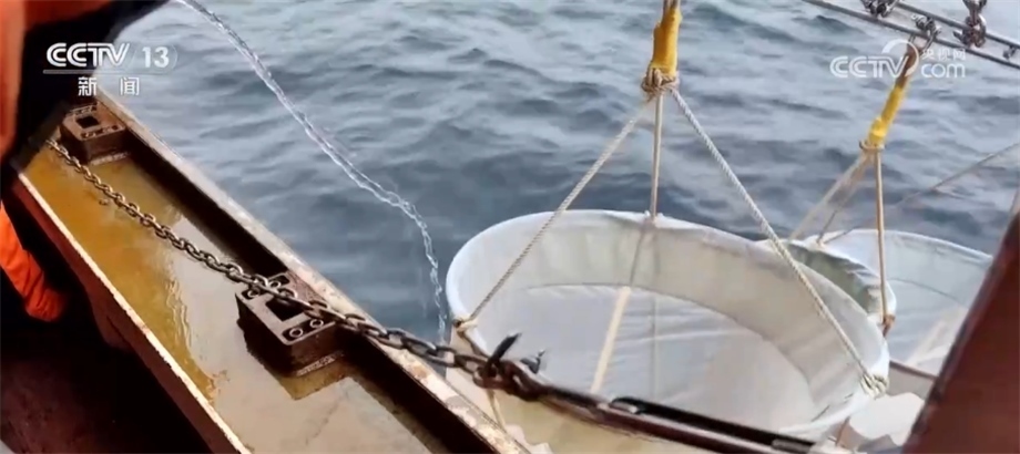 多參數(shù)海洋觀測系統(tǒng)是本次科考使用頻率最高的設(shè)備,涉及海洋化學(xué)、微生物等多個領(lǐng)域。在系統(tǒng)回收后,緊接著,隊員將垂直拖網(wǎng)放下水面。