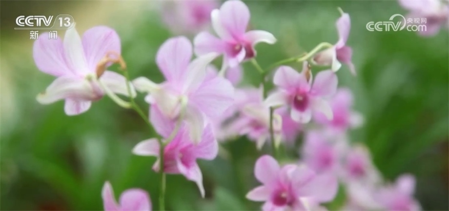 總臺央視記者 陳燁煒:今天室外的溫度在38℃左右,但是在蘭花的種植棚里是28℃左右,為什么室外和室內(nèi)的溫度能相差10℃?原因就在于在這個棚里面被安裝上了一系列的智能設(shè)備,一旦里面的溫度超過了設(shè)定值,這里的水簾、噴霧設(shè)備就會自動開啟,來進(jìn)行一系列的調(diào)節(jié),以此來達(dá)到這些蘭花最適宜生長的一個環(huán)境。