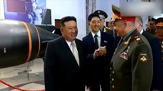 ·金正恩向俄防長展示朝鮮武器裝備,洲際彈道導彈無人機亮相。