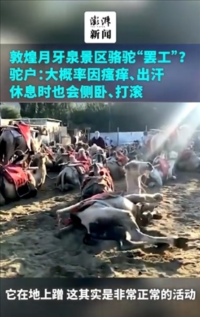 ·敦煌景區(qū)駱駝“罷工”?駝戶:或因瘙癢出汗,休息會側臥打滾。