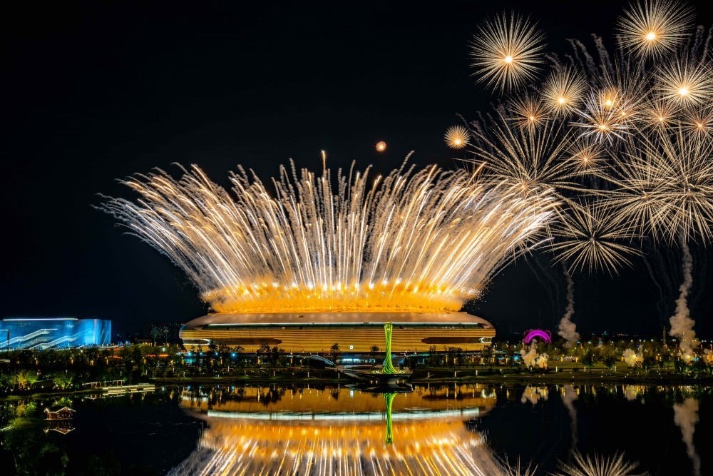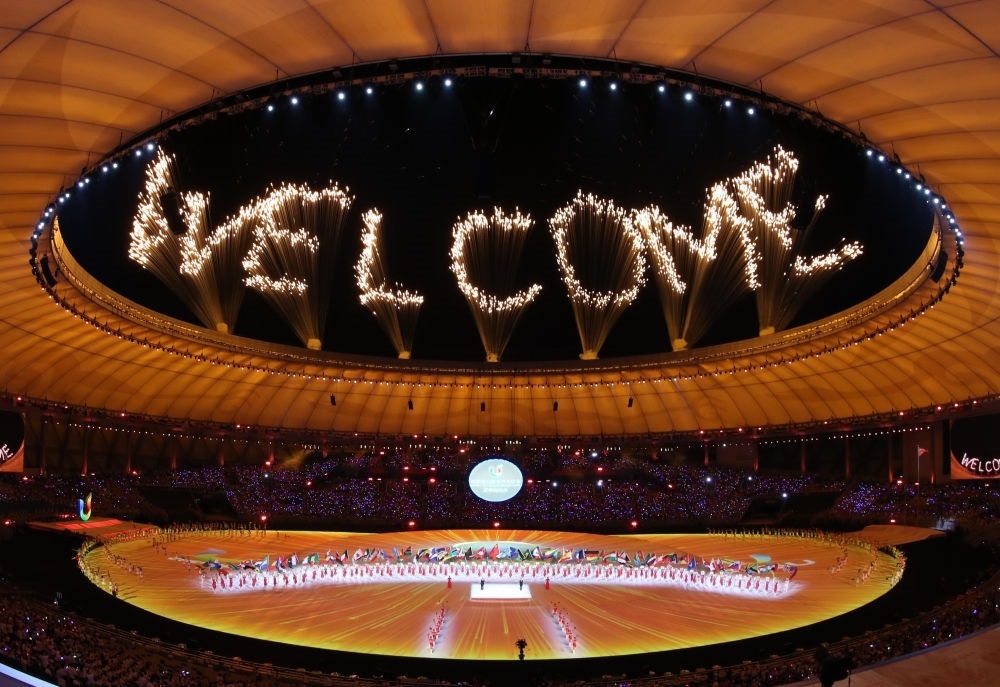 璀璨焰火,照亮碧波蕩漾的東安湖,在世界各地青年學生的熱切注目中,第三十一屆世界大學生夏季運動會開幕。