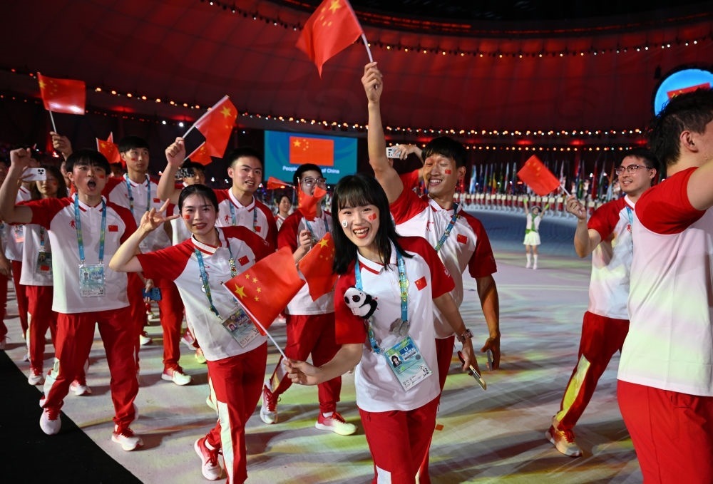 中國大學生體育代表團在開幕式上入場。