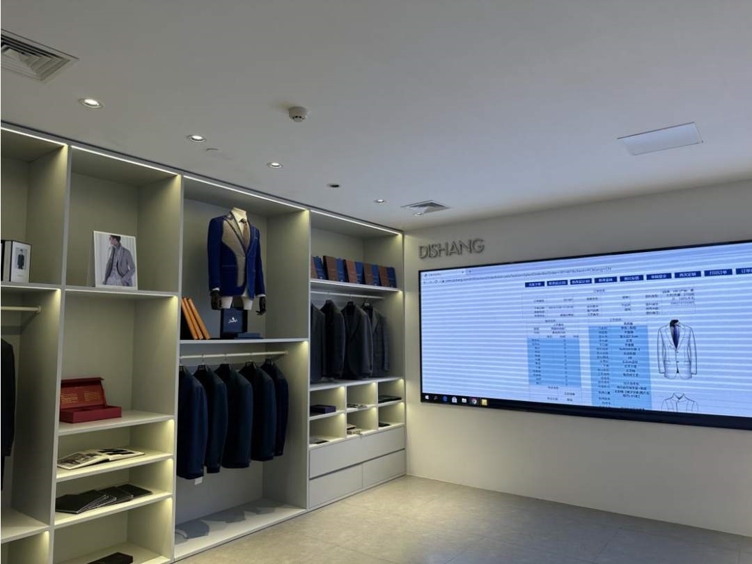 走進迪尚集團辦公區(qū),多塊電子屏上,數據不斷更新,條目不斷變換,數字感十足。如果不是隨處可見的服裝展示,很難想到這是全國最大的服裝進出口企業(yè)之一。