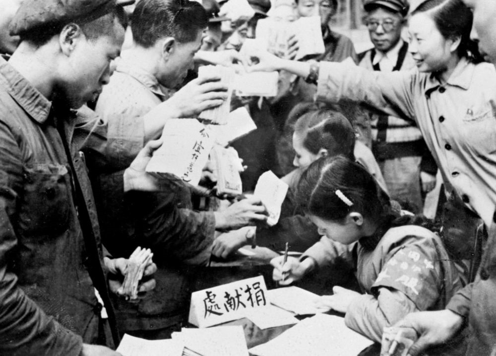 ——知識分子為支援前線的愛國事業(yè)鼓與呼,醫(yī)務(wù)工作者組織大批醫(yī)療隊奔赴前線,“為最可愛的人購買飛機大炮”的捐款熱潮席卷了每一個社會層面、每一個社會角落……
