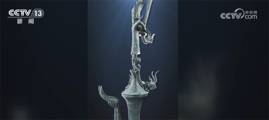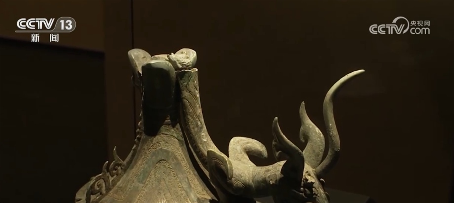 北京大學(xué)考古文博學(xué)院副教授 趙昊:為什么我們不直接把這件器蓋放在這個(gè)尊之上,或者包括那個(gè)持龍人像放在器蓋之上,這涉及到一個(gè)文物安全的問題。因?yàn)橄鄬?duì)來說這些器物本體已經(jīng)有一些變形,第二就是它長期埋在地下,本體已經(jīng)變得比較疏松了,如果我們將它原來整體復(fù)原蓋在一起,重量會(huì)很大,可能對(duì)于下面的支撐壓迫比較重。