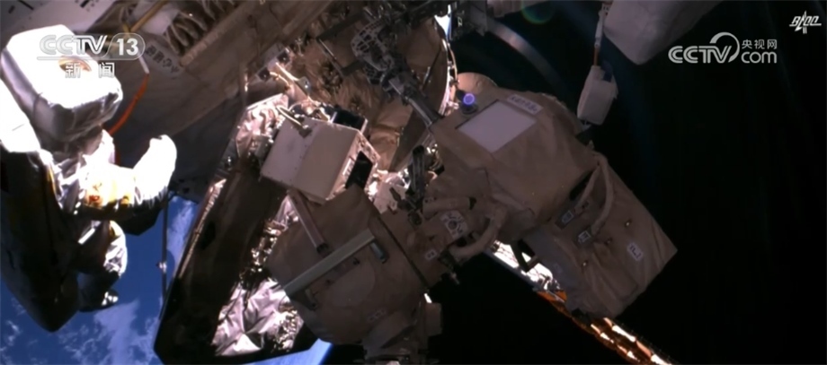 7月20日,神舟十六號航天員景海鵬、朱楊柱、桂海潮密切協(xié)同,在空間站機械臂支持下,圓滿完成出艙活動。出艙期間,完成了核心艙全景相機B在軌支架安裝及抬升、夢天艙全景相機A和B解鎖及抬升等任務,我們現(xiàn)在看到的就是相機抬升后所拍到的畫面。