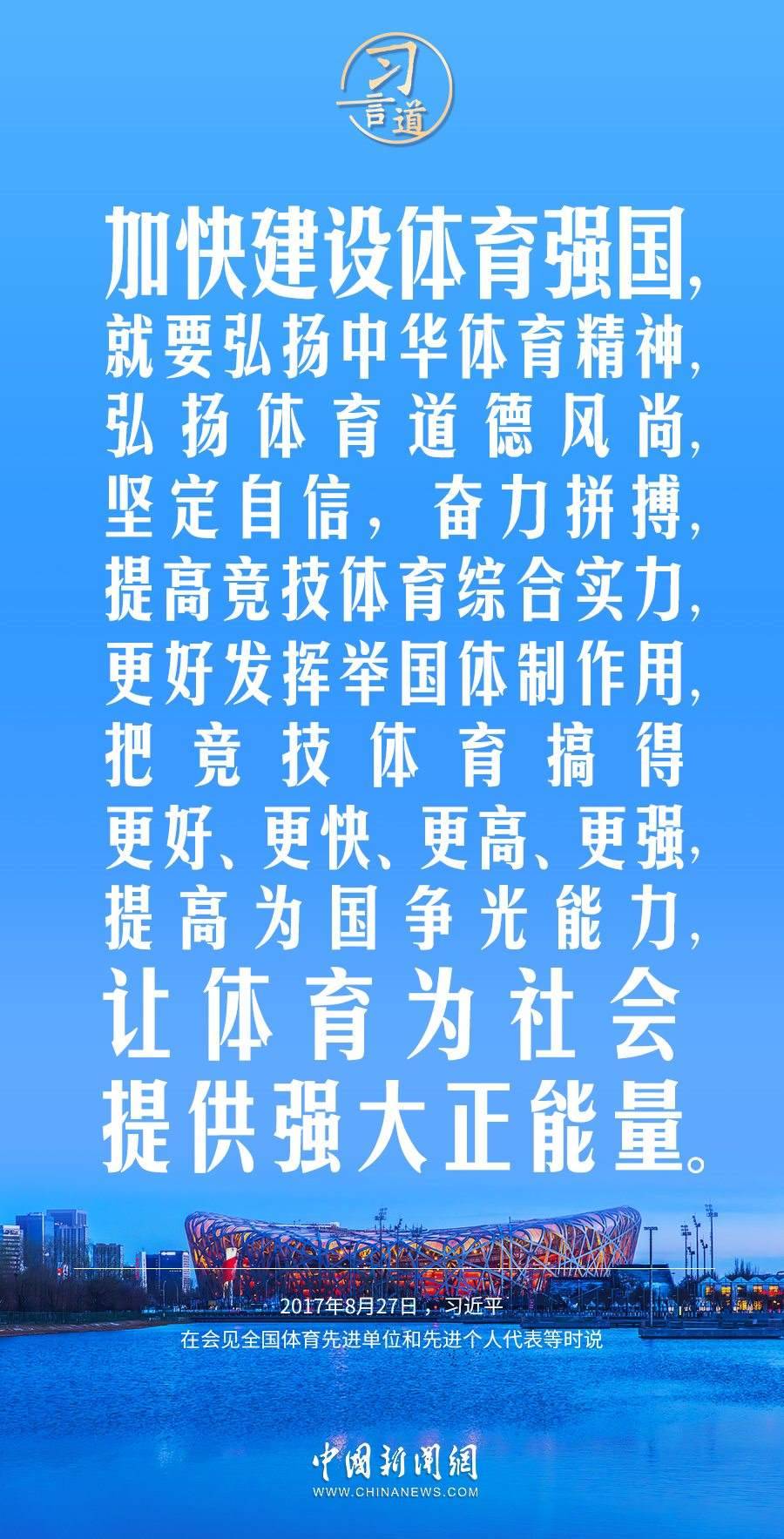 習(xí)近平總書記高度重視體育強(qiáng)國(guó)建設(shè),多次作出重要論述,強(qiáng)調(diào)讓體育為社會(huì)提供強(qiáng)大正能量。