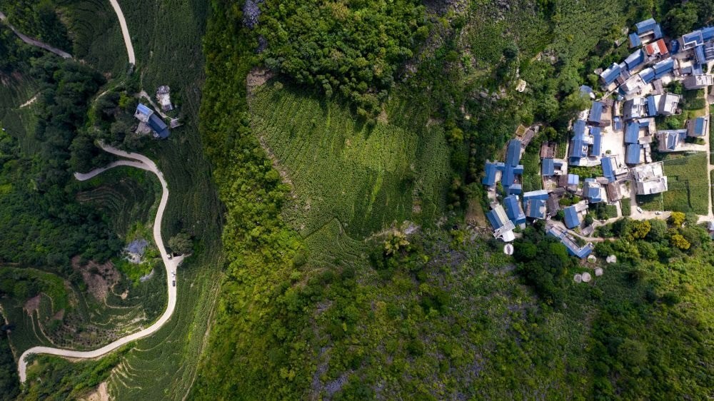 這是7月26日拍攝的西疇縣山間公路,右側(cè)這條是巖頭村村民小組長李華明帶領(lǐng)群眾修建的最后一公里進(jìn)村道路。新華社記者 陳欣波 攝