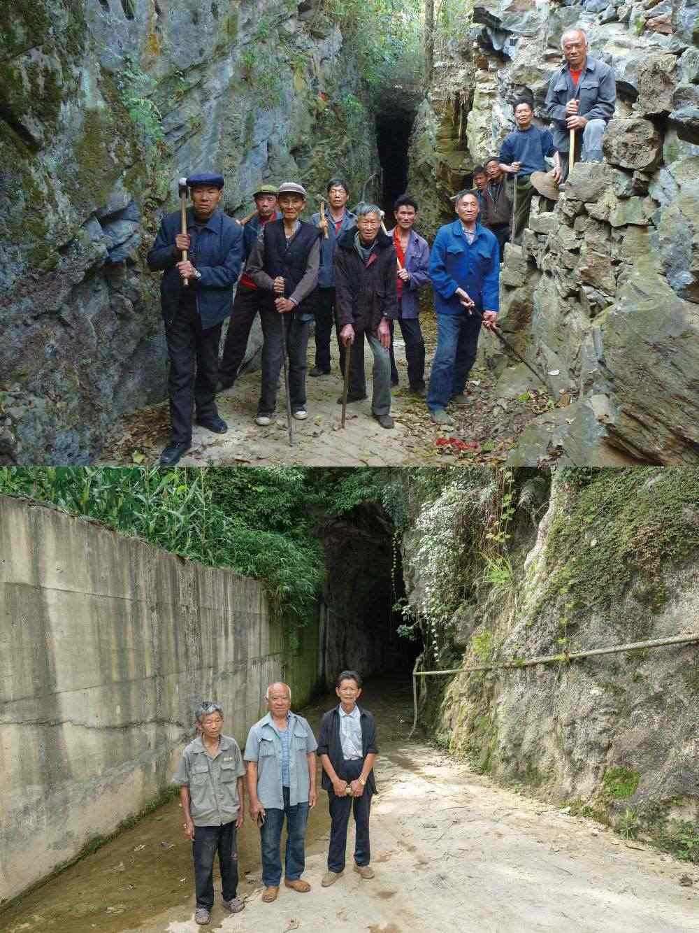 這首生命樂章的序曲是“人定勝天”:劉家塘村四面環(huán)山,地勢低洼,多雨季節(jié)洪水泛濫,田地絕收。1962年,村黨支部決定開鑿隧洞。隨后,村民開始了“驚人之舉”——全村男女老少齊上陣,以鐵錘、鋼釬為主要工具,歷時(shí)近半個(gè)世紀(jì),鑿?fù)烁?.5米、寬1.5米,全長300米的穿山隧洞,徹底解決了水患。后來,這個(gè)隧洞被命名為“勝天洞”。