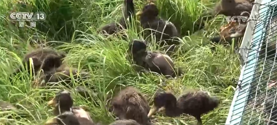 隨著《希望的田野》音樂聲響起,鴨舍門緩緩打開,小鴨子們已經(jīng)開始迫不及待地走出鴨舍,沖進稻田地。