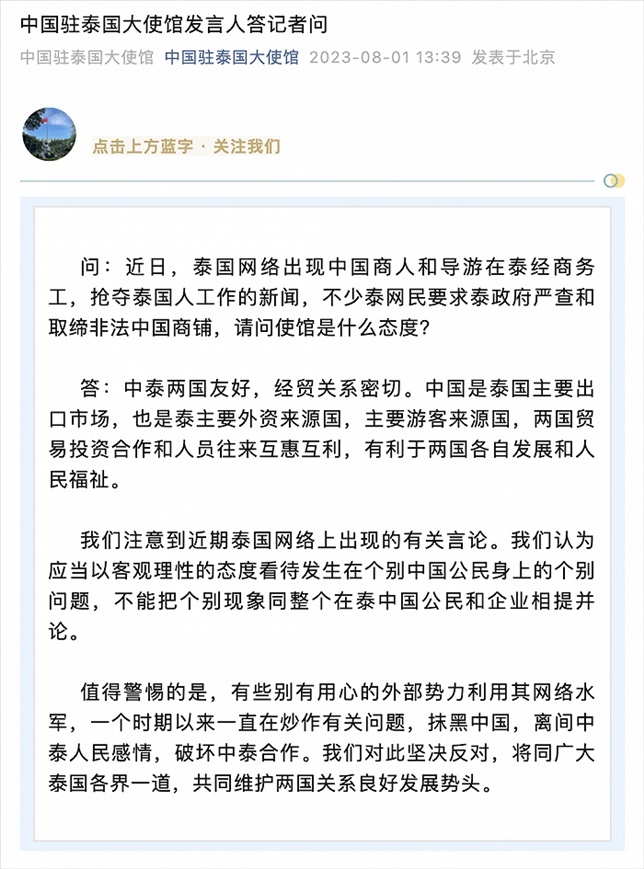 ·中國商人和導(dǎo)游在泰搶奪泰國人工作?泰網(wǎng)民要求嚴查?中使館回應(yīng)。