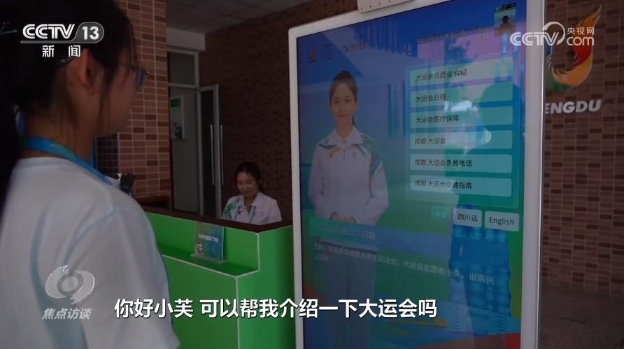 本屆大運(yùn)會(huì)的虛擬志愿者小芙,通過先進(jìn)的語音合成、AI口唇表情驅(qū)動(dòng)、圖像處理等技術(shù),能夠使用普通話、四川話和英文,和攝像頭識(shí)別出的對象進(jìn)行“面對面”的直接交流。這套系統(tǒng)的研發(fā)者之一雷曉輝是一名“90后”工程師。