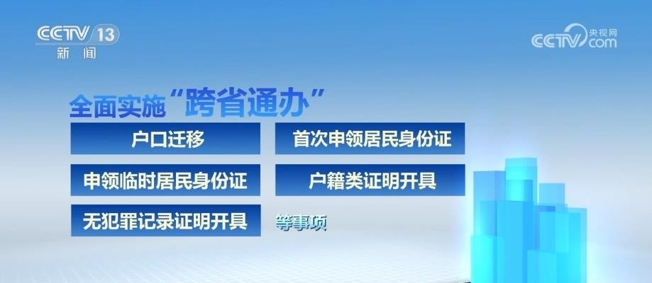 全面實施“跨省通辦”。對戶口遷移、首次申領(lǐng)居民身份證、申領(lǐng)臨時居民身份證、戶籍類證明開具、無犯罪記錄證明開具等事項,全面實施“跨省通辦”。