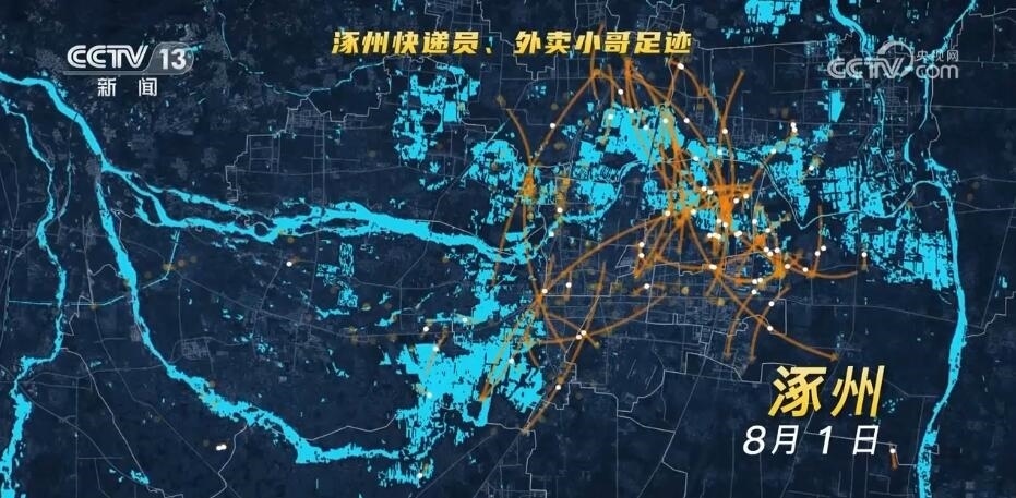 8月1日到8月2日,幾乎在24小時內(nèi),涿州小城就增加了近1.7萬個外地手機信令,尤其有將近1萬人從外省趕到涿州,我們從新聞中看到了來自各地的救援“逆行者”,爭分奪秒地向受災(zāi)最嚴重的地方挺進。