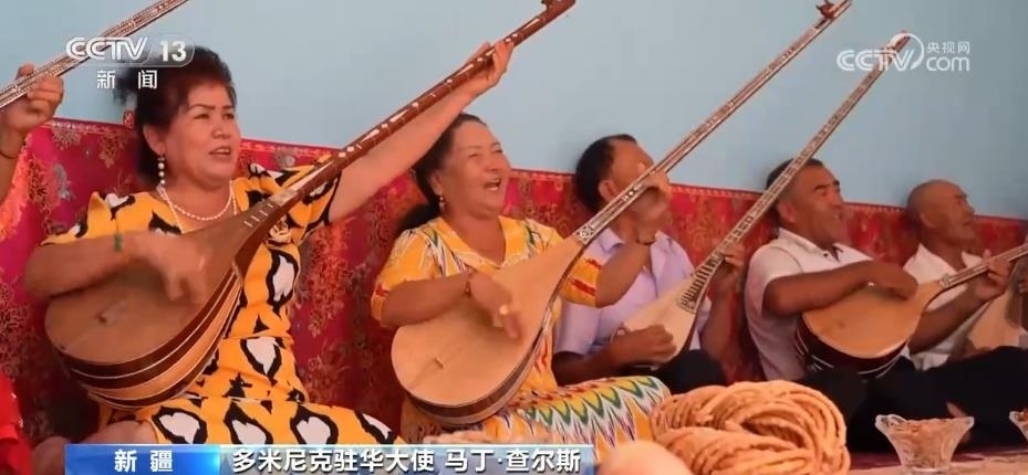 駐華使節(jié)們走進(jìn)喀什古城的街市巷陌,感受當(dāng)?shù)鬲?dú)特的民族文化;在克孜爾千佛洞,領(lǐng)略跨越千年的石窟藝術(shù);來(lái)到新疆民間手工樂(lè)器制作第一村庫(kù)車(chē)市新和縣加依村,同當(dāng)?shù)匕傩找黄疠d歌載舞;觀(guān)看非遺項(xiàng)目十二木卡姆等一系列活動(dòng),讓使節(jié)們感嘆,新疆少數(shù)民族傳統(tǒng)文化和生活習(xí)俗得到了充分保護(hù)。