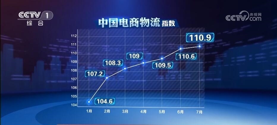 中國物流與采購聯(lián)合會8月7日公布,7月份中國電商物流指數(shù)為110.9點,比上月提高0.3點,保持連續(xù)上升態(tài)勢。