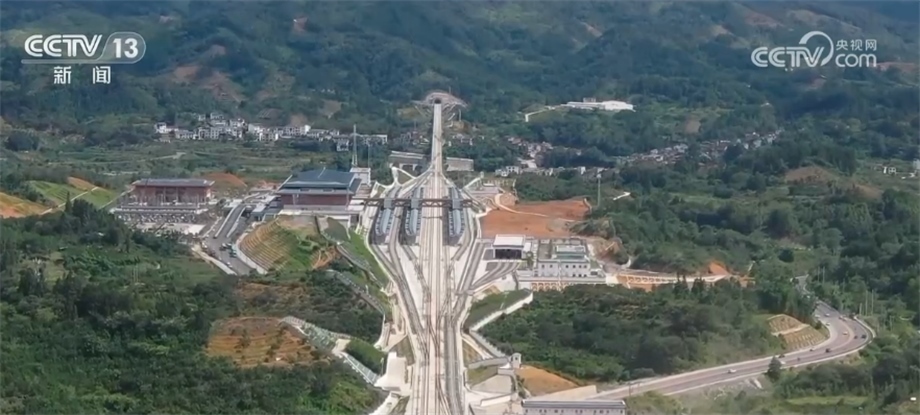 總臺記者 茍順庭:在我身后就是全長12.7公里的貴南高鐵朝陽隧道。因?yàn)樗淼浪诘纳襟w存在有大量的巖溶地質(zhì)點(diǎn),地下暗河、溶洞溶腔交錯縱橫、環(huán)境復(fù)雜,所以這個朝陽隧道是整條線路上風(fēng)險系數(shù)最高的控制性工程。穿過朝陽隧道后,就到了貴南高鐵貴州段的最后一站——荔波站。