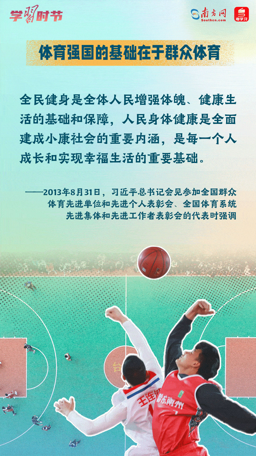 今年8月8日是我國第15個“全民健身日”,讓我們學(xué)習(xí)領(lǐng)悟習(xí)近平總書記關(guān)于推進(jìn)全民健身的重要論述,一起加入全民健身的隊伍中,通過健身收獲健康、收獲快樂!