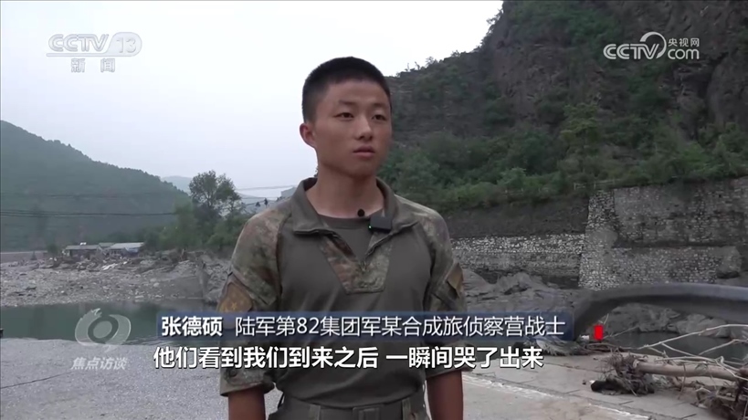 陸軍第82集團軍某合成旅偵察營戰(zhàn)士張德碩:“我們進到屋里之后,看到她姥姥和她躺在床上,她們看到我們到來之后,一瞬間哭了出來?!?/p>