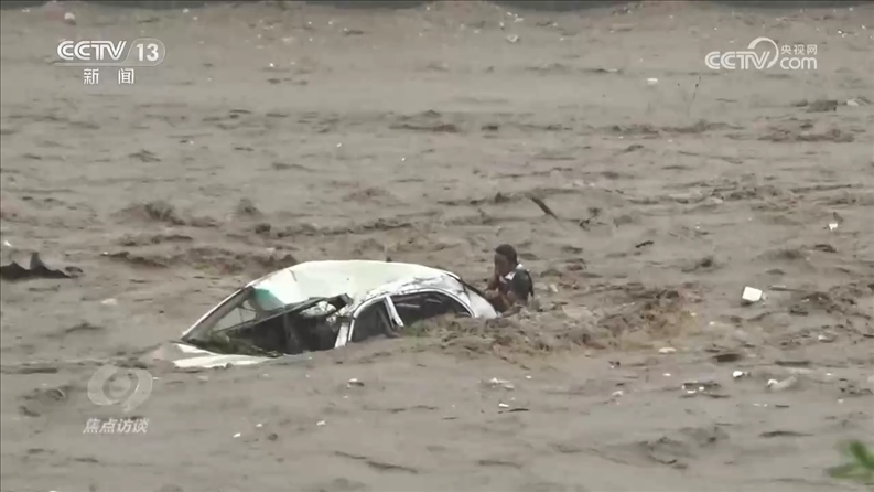 在這次抗洪救災中,還有許許多多這樣的感人故事。這一段救援的視頻在網(wǎng)上受到很多人的關(guān)注,7月30日,在河北武安縣,一名男子駕駛轎車通過涉水路段時,被湍急的洪水沖入河道,被困于河道正中央。