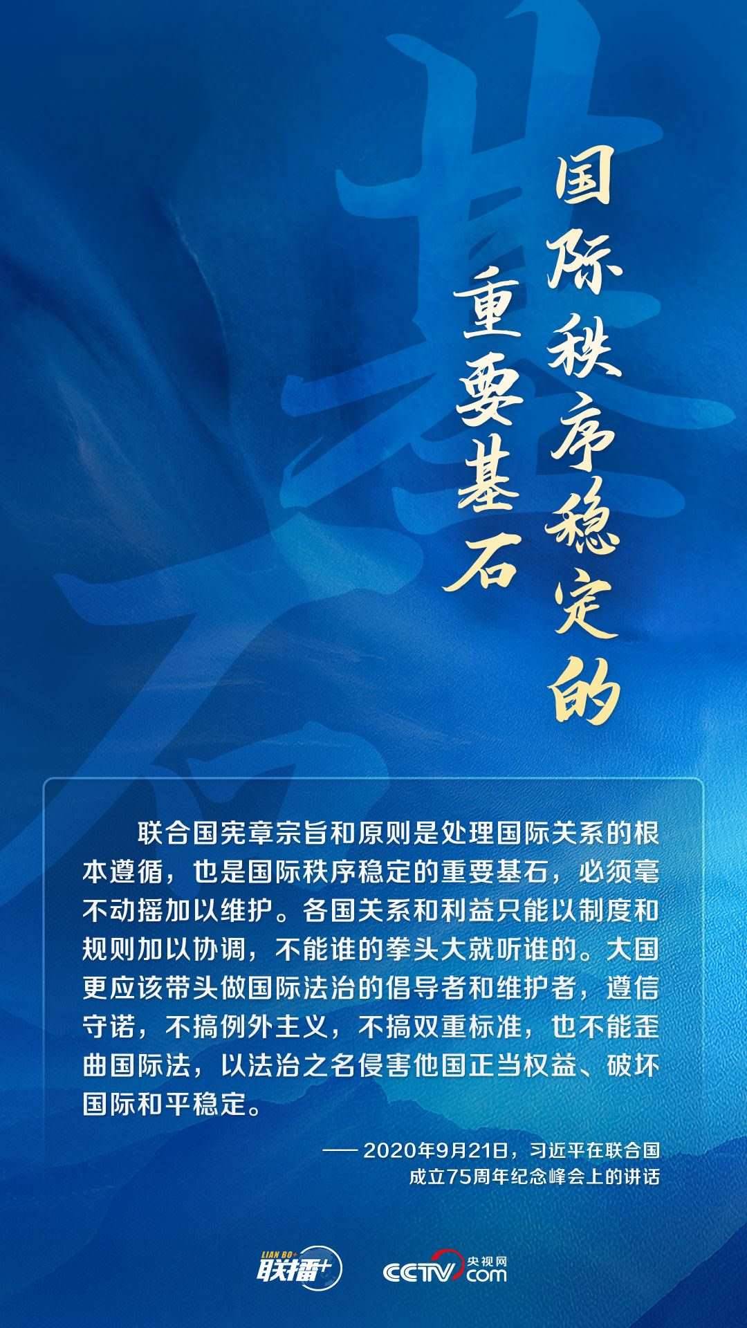 世界上只有一個體系,就是以聯(lián)合國為核心的國際體系;只有一套規(guī)則,就是以聯(lián)合國憲章為基礎(chǔ)的國際關(guān)系基本準(zhǔn)則。中國始終以實際行動踐行聯(lián)合國憲章宗旨和原則,持續(xù)為人類文明和進步事業(yè)貢獻中國方案,承擔(dān)大國責(zé)任,展現(xiàn)大國擔(dān)當(dāng)。