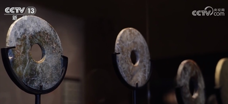 總臺(tái)記者 朱睿祺:繼續(xù)往里走,就可以看到以玉器為專題的展廳“玉魂國(guó)魄”。良渚先民圍繞對(duì)神的崇拜,設(shè)計(jì)出了一套用以區(qū)別階層、標(biāo)識(shí)身份、反映等級(jí)的玉禮器系統(tǒng)。在這里,大家能找到杭州第19屆亞運(yùn)會(huì)吉祥物“琮琮”的原型——玉琮,還有第4屆亞殘運(yùn)會(huì)的吉祥物“飛飛”的原型——良渚神鳥(niǎo)。
