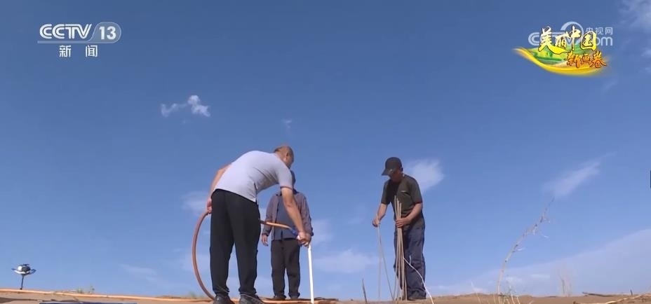 但個性倔強的田旺,骨子里有一股不服輸?shù)膭蓬^。他暗暗下定決心,一定要留下來,還要干出一番名堂。他虛心向老一輩治沙人學習,鍛煉自己適應沙漠的生活和工作。很快,田旺不僅適應了沙漠環(huán)境,而且還不斷努力鉆研新的治沙技術(shù)。在沙丘上,田旺給我們展示了現(xiàn)在效率和成活率最高的氣流植樹法。