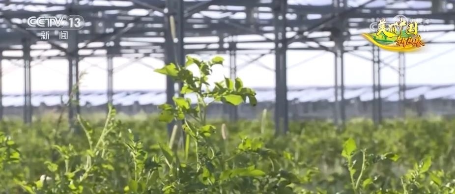 隨著防沙治沙技術(shù)的不斷迭代進步,億利資源集團引進了光伏治沙的理念?,F(xiàn)在,已經(jīng)升級到最新的第三代技術(shù)。離地8米的光伏板下面,種了馬鈴薯、西紅柿等作物,其中,馬鈴薯畝產(chǎn)能達到4000公斤,而且大型機械可以在里面作業(yè)。在利用光伏治沙的過程中,田旺和他的團隊還開創(chuàng)了畜禽草耦合治沙技術(shù),利用光伏板下的空間發(fā)展生態(tài)養(yǎng)殖。