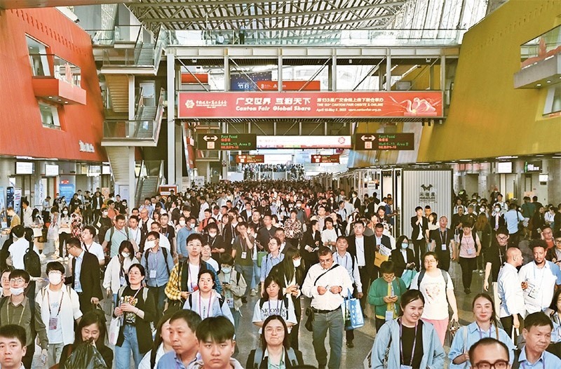 第133屆中國進(jìn)出口商品交易會(廣交會)線下展于2023年4月15日至5月5日分3期舉辦,同時線上平臺全年常態(tài)化運(yùn)營。本屆廣交會展覽面積、參展企業(yè)數(shù)量均創(chuàng)歷史新高,吸引220多個國家和地區(qū)的數(shù)十萬采購商報(bào)名參會。圖為4月26日拍攝的廣交會現(xiàn)場。 中新社記者 陳楚紅/攝