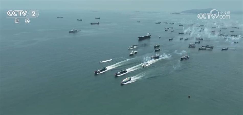 中午12點整,在福州市連江縣的黃岐中心漁港,隨著一聲令下,漁港內(nèi)汽笛長鳴、彩煙齊放,在指揮船的護(hù)航下,數(shù)百艘漁船有序起航,場面蔚為壯觀。