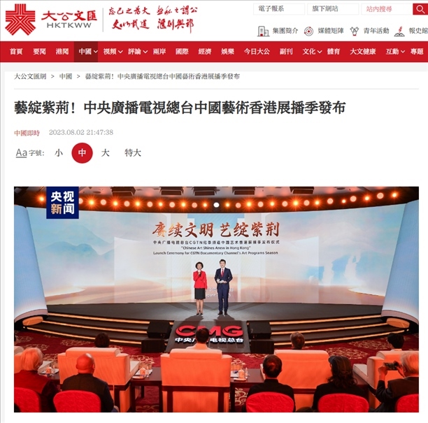 香港特區(qū)政府駐京辦刊文推介中國藝術(shù)香港展播季