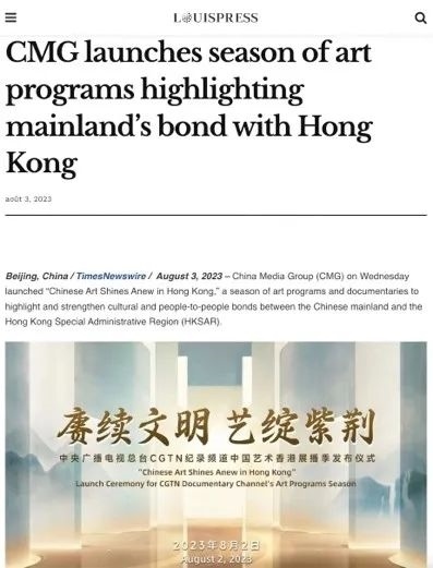 總臺CGTN在官網(wǎng)發(fā)布的《中國藝術(shù)香港展播季 讓觀眾零距離觸摸源遠流長的中華文明》稿件被來自美國、英國、法國、澳大利亞、韓國、加拿大、意大利等20個國家和地區(qū)的799家海外主流網(wǎng)絡媒體轉(zhuǎn)載。美國《國際日報》《歐洲僑報》《葡新報》《非洲時報》《委國僑報》、新西蘭格局傳媒網(wǎng)站、歐僑網(wǎng)和日本華商網(wǎng)等海外華文媒體也以多種形式刊載轉(zhuǎn)發(fā)了相關(guān)報道。