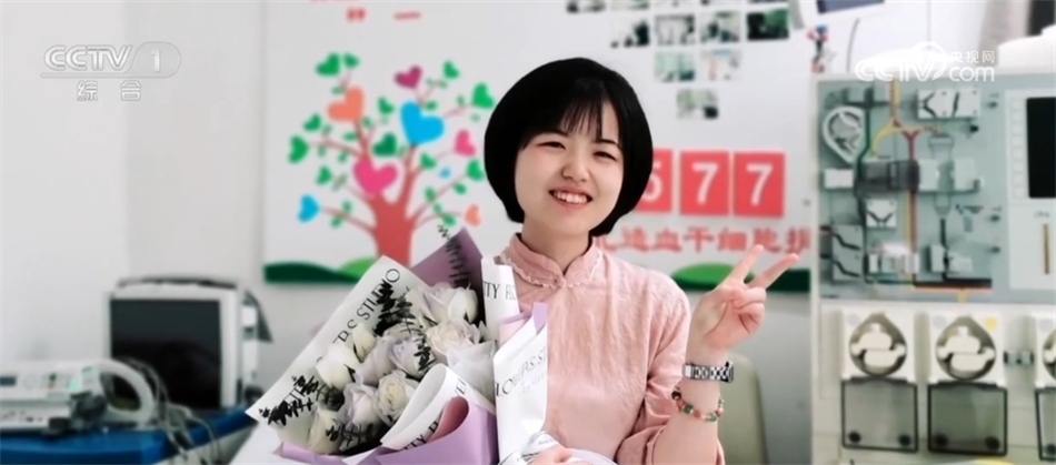 畢業(yè)前夕,余書婷順利捐出了200毫升的造血干細(xì)胞混懸液。從醫(yī)學(xué)生到醫(yī)生,記不清熬過多少夜、流過多少淚,但是她總記得治愈出院小朋友們開心的笑容。