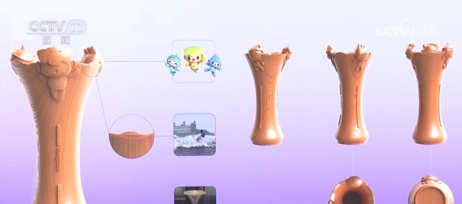頒獎托盤設(shè)計靈感則來源于微風(fēng)中波動的西湖水面,結(jié)合本屆亞運會核心圖形“潤澤”中的飄逸絲帶意向,整體給人流動的感覺。