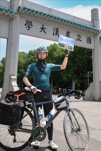 2023年是云南昆明小伙文迪與武漢大學(xué)相遇的年份,2023公里是文迪的家鄉(xiāng)到武大的距離。“這是我一直以來的夢(mèng)想”文迪說,在初中時(shí),他讀到大學(xué)新生騎行報(bào)到的故事,從此下定決心,未來考上大學(xué)后“考到哪里,就騎到哪里”。今年高考,文迪被武大資源與環(huán)境科學(xué)學(xué)院空間信息與國土資源專業(yè)錄取,從云貴高原到荊楚大地,文迪一路騎行,來了一場特別的新生報(bào)到之旅!8月21日,這場既是旅游又是“流浪”的旅途終于結(jié)束,文迪也來到了珞珈山下,即將在這座最美大學(xué)校園里開始四年的大學(xué)生活。