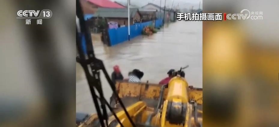 孫慶波將繩子的一頭綁在鏟車上,另一頭綁上水桶,找準(zhǔn)水流的方向,讓水桶順流漂到被困村民旁邊。