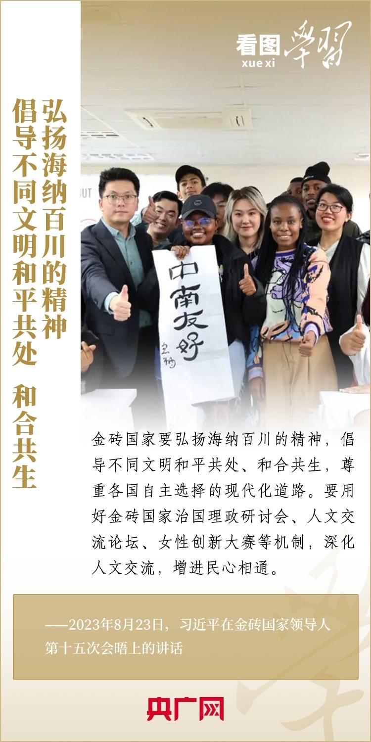 當(dāng)?shù)貢r(shí)間8月23日,習(xí)近平主席出席金磚國(guó)家領(lǐng)導(dǎo)人第十五次會(huì)晤并發(fā)表重要講話,強(qiáng)調(diào)金磚國(guó)家要秉持開(kāi)放包容、合作共贏的金磚精神,以金磚責(zé)任應(yīng)對(duì)共同挑戰(zhàn),以金磚擔(dān)當(dāng)開(kāi)創(chuàng)美好未來(lái)。一起來(lái)學(xué)習(xí)!