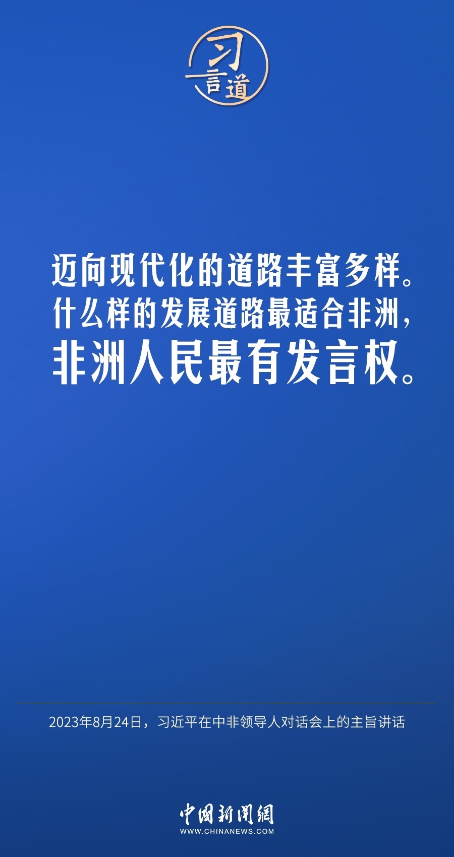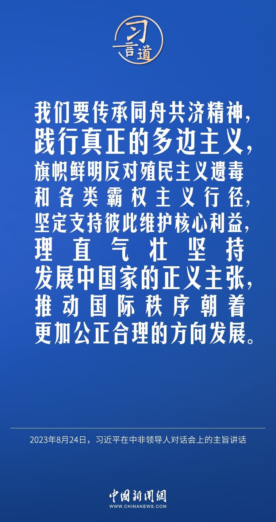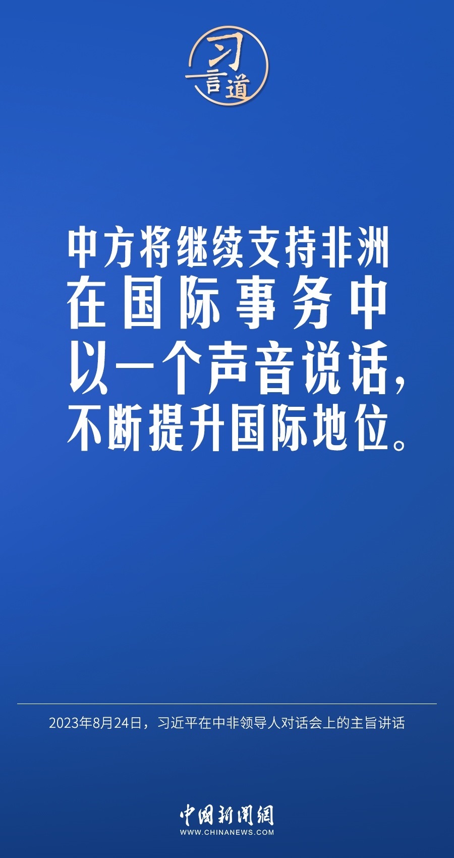 當(dāng)?shù)貢r(shí)間8月24日晚,國家主席習(xí)近平和南非總統(tǒng)拉馬福薩在約翰內(nèi)斯堡共同主持中非領(lǐng)導(dǎo)人對話會(huì)。習(xí)近平發(fā)表題為《攜手推進(jìn)現(xiàn)代化事業(yè) 共創(chuàng)中非美好未來》的主旨講話。習(xí)近平指出——