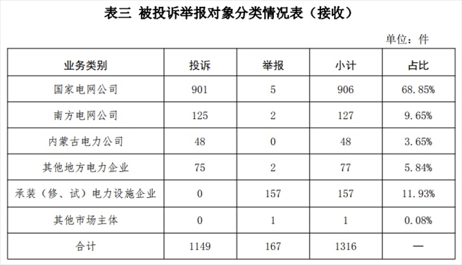 電力行業(yè)排在首位,數(shù)量為1263件、占投訴舉報總數(shù)的95.97%,主要集中在供電服務、市場準入、電力安全等方面。
