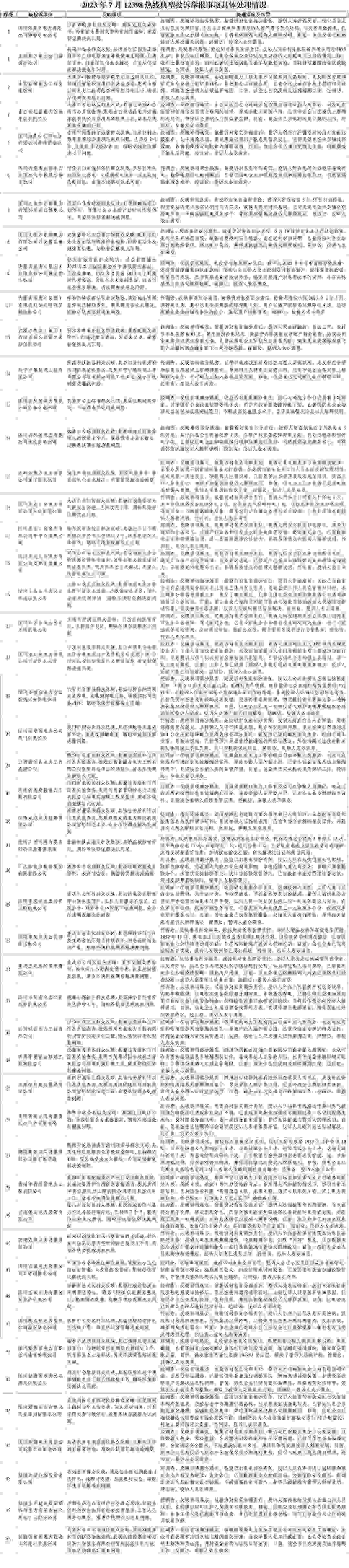 投訴舉報量靠前的2個省份為四川(31件)、黑龍江(28件)。